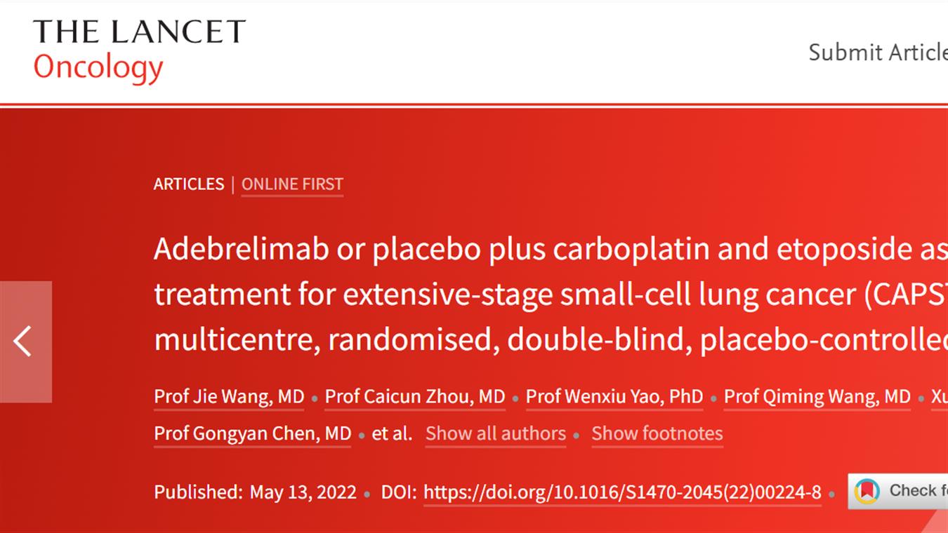 利来w66国际卡瑞利珠单抗联合阿帕替尼最新研究成果荣登《柳叶刀·肿瘤》